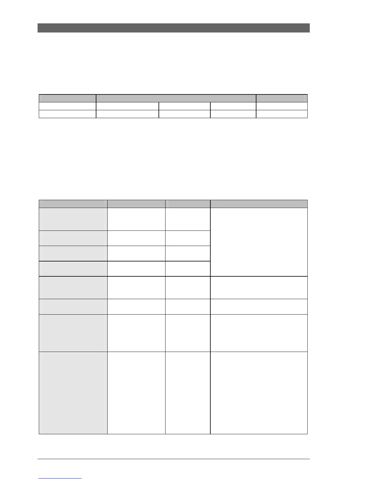 menu as indicated in the table below (press menu buttons briefly).