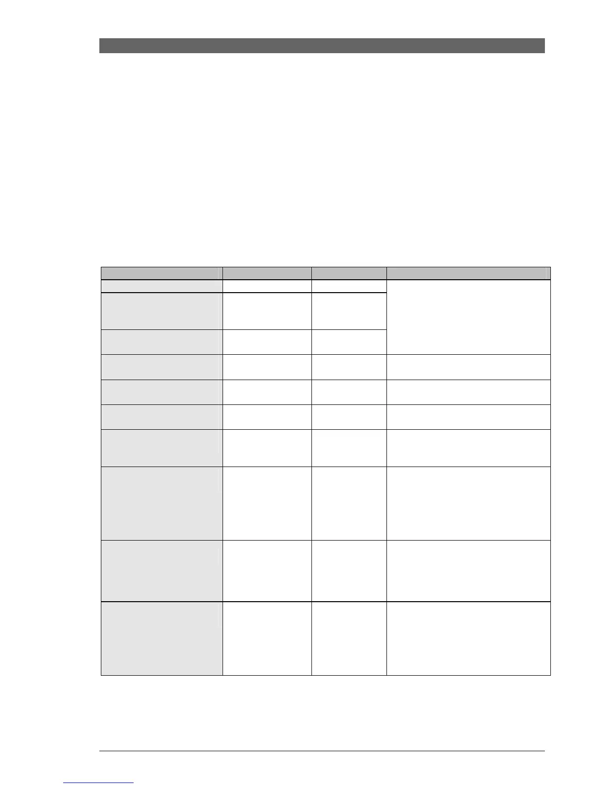 The values below can be read and adjusted in the diagnosis menu as shown in the table.