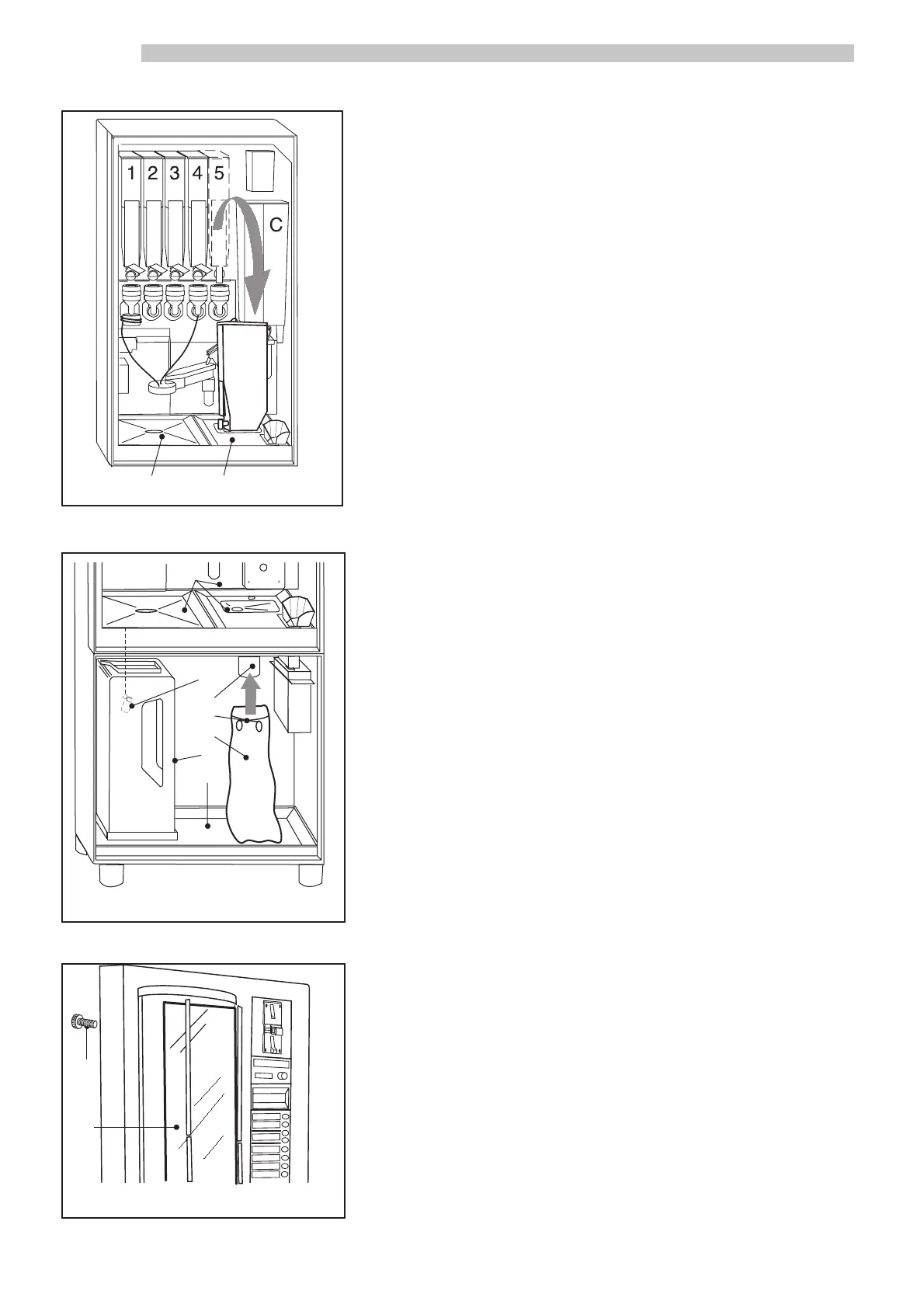 - Make sure that the three upper drip trays ref. 7 (Fig. 18A) and the cabinet