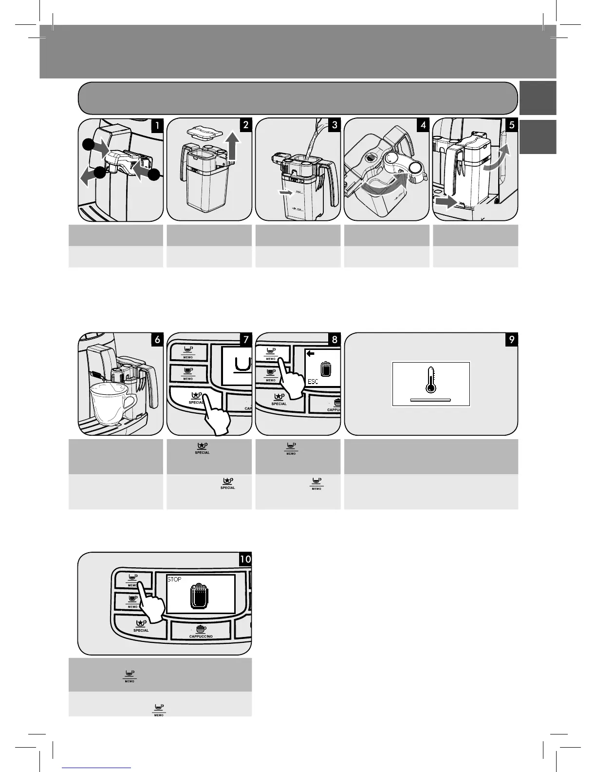 Wyjąć dozownik wody. Wyjąć pokrywkę dzbanka. Napełnić mlekiem. Przekręcić dozownik do po-