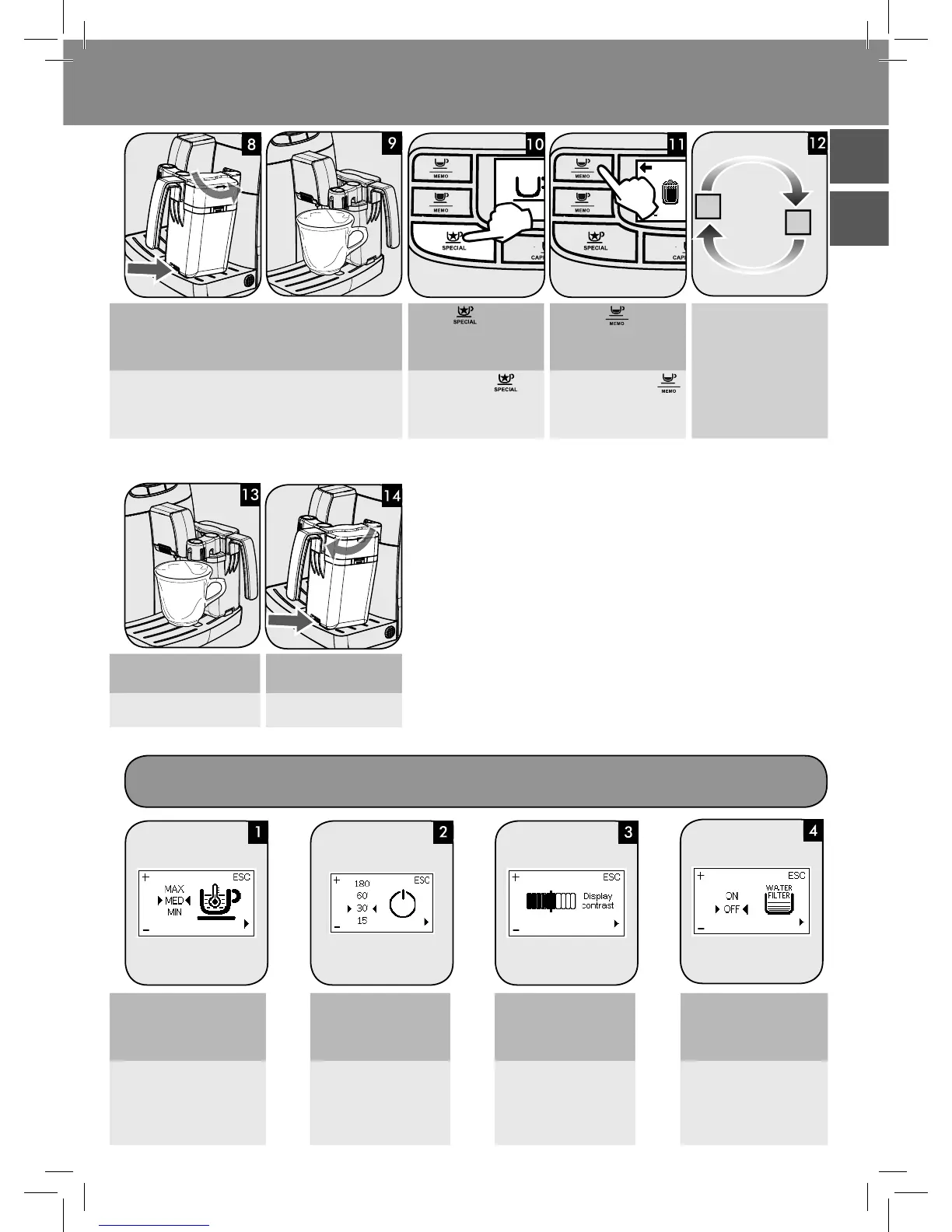Setting the temperature. Setting the stand-by modus. Setting the display contrast. Adjusting the "Intenza+" lter.