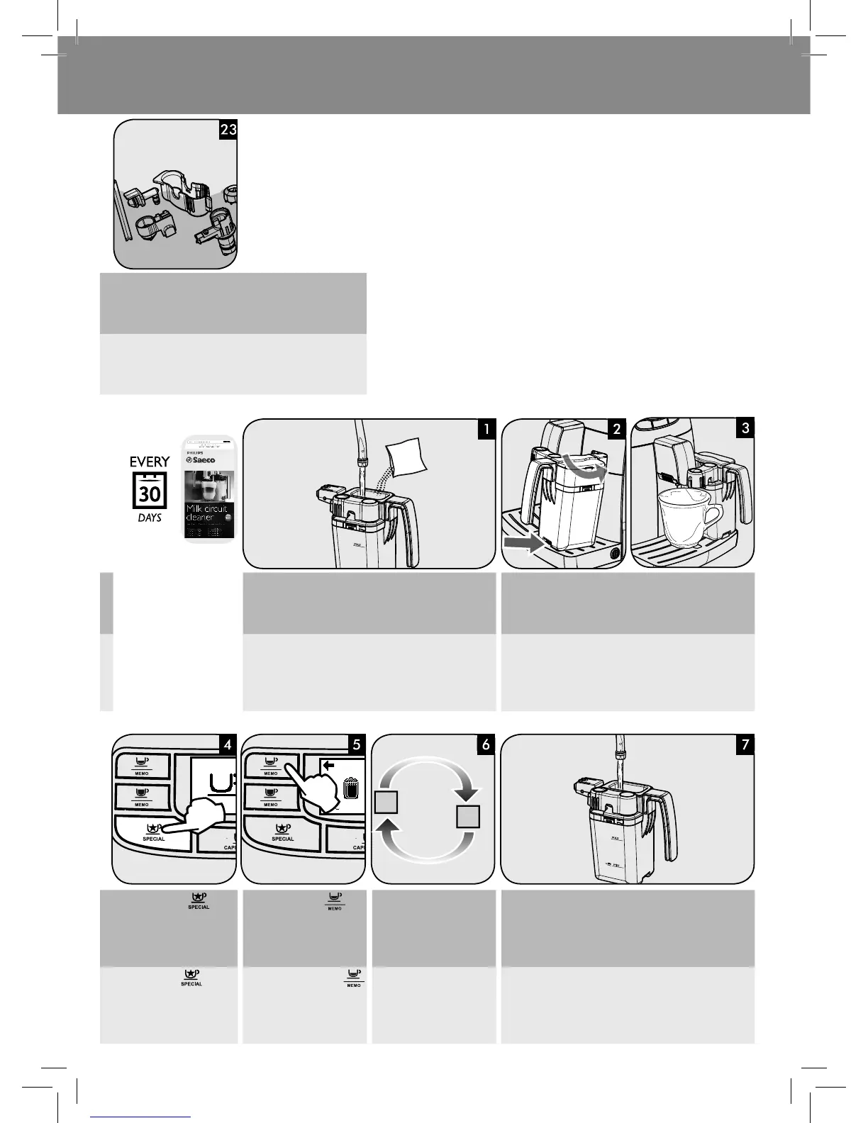 Nasypte jeden sáček prostředku Saeco Milk Circuit Cleaner do