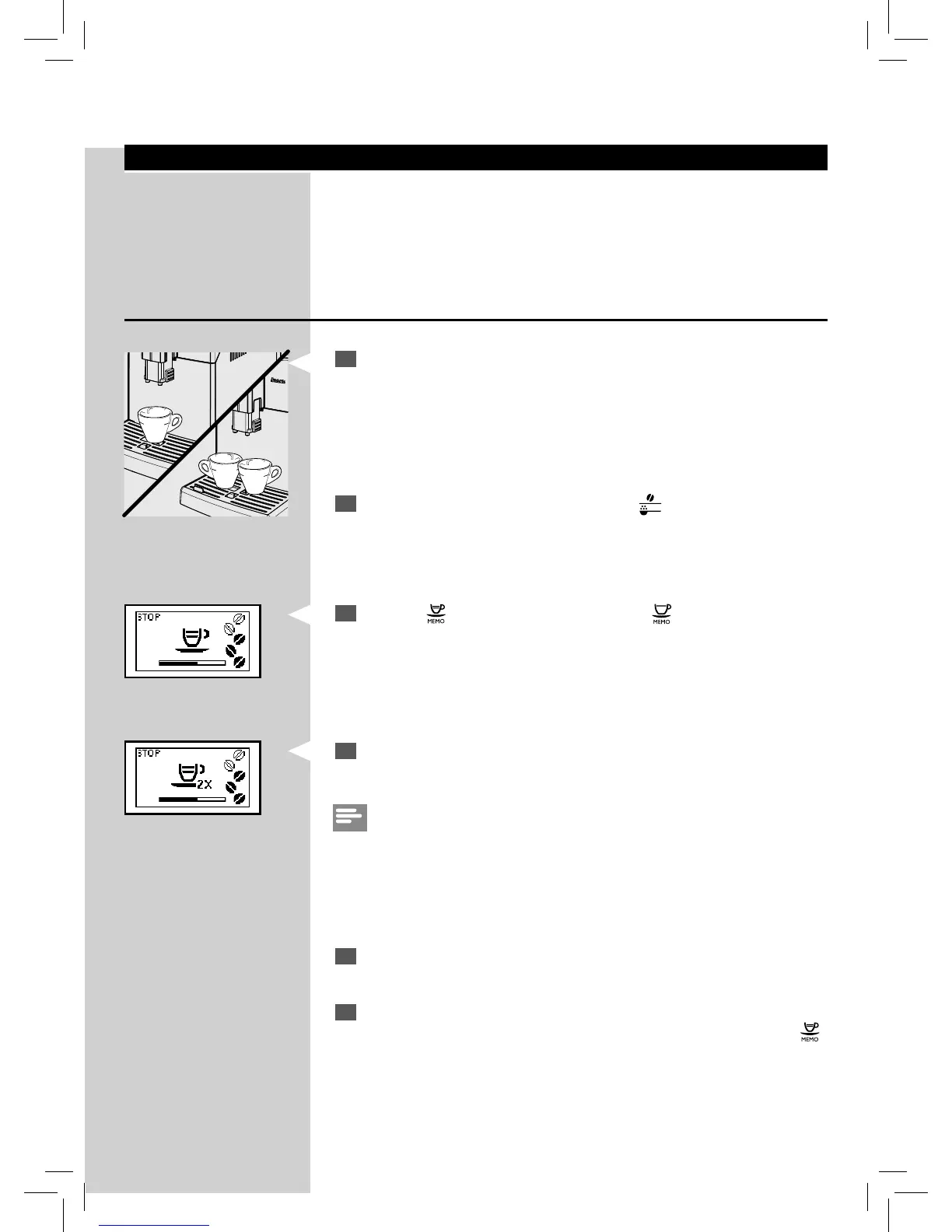 Press the “ ” button for an espresso or the “ ” button for a co ee.