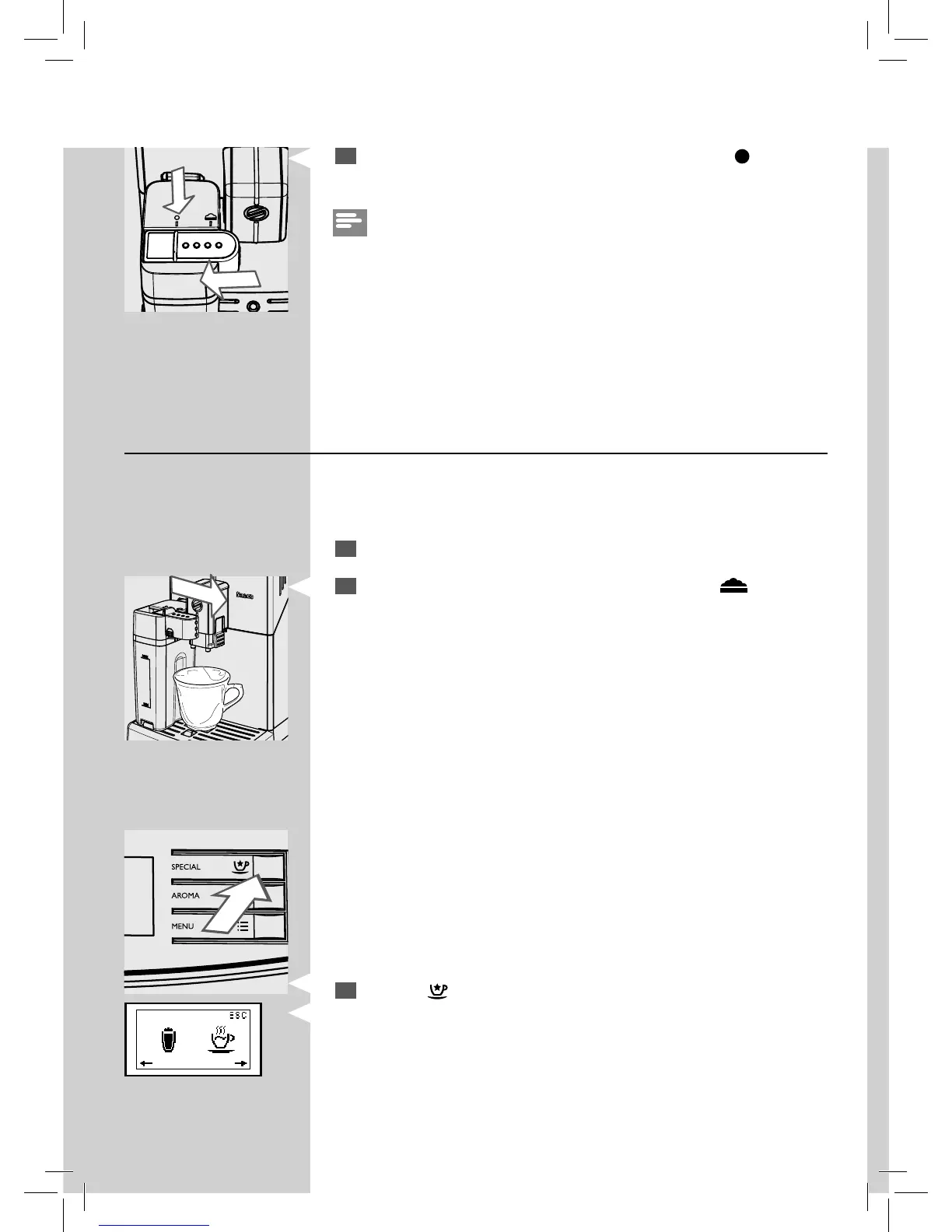 Pull out the milk carafe dispenser to the right up to the “ ” icon. Place