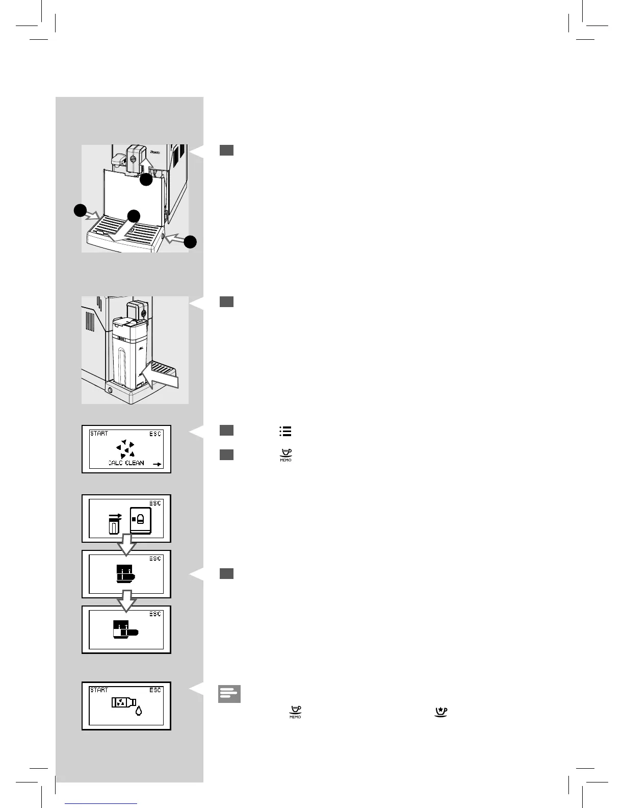 3 - Remove and empty the drip tray and the co ee grounds drawer;