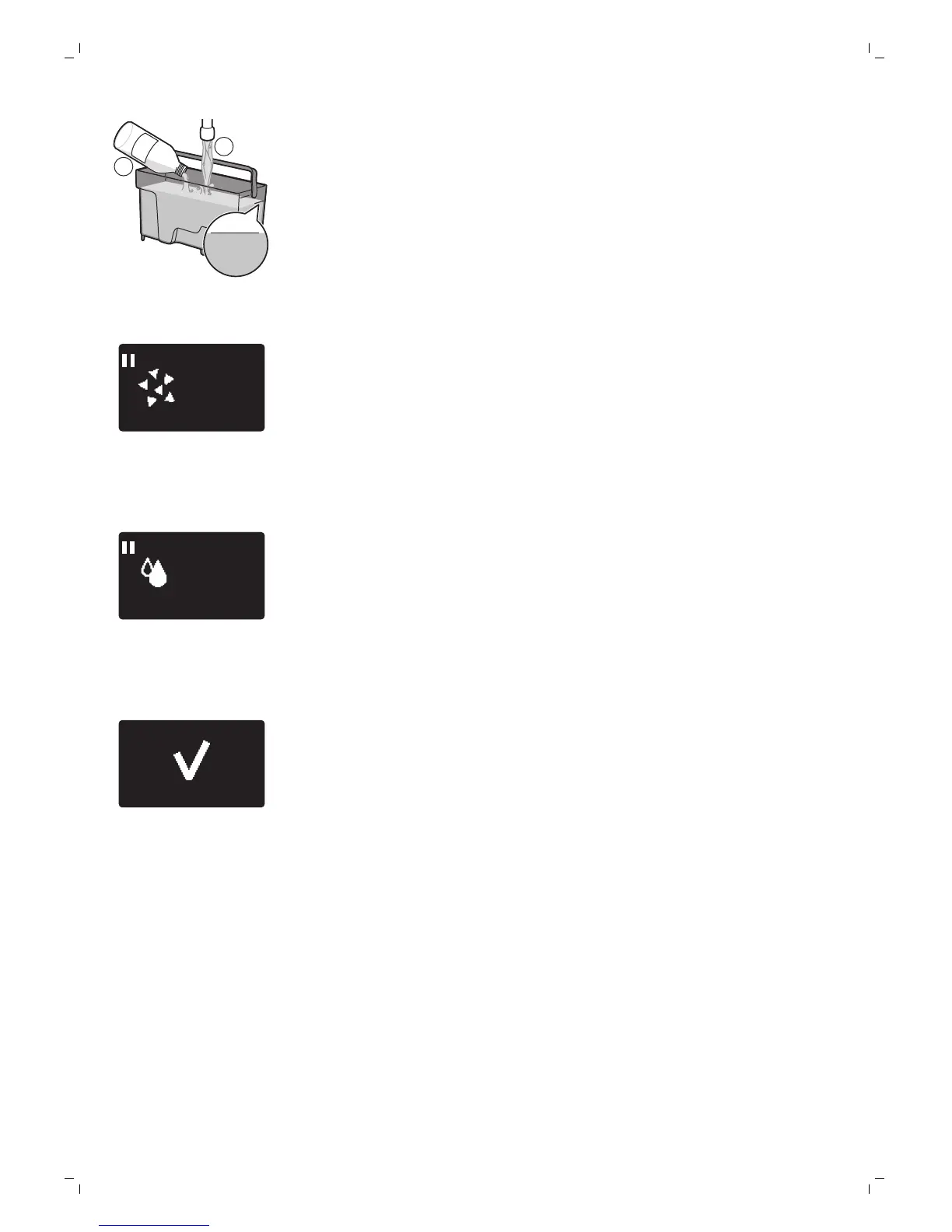 The first phase of the descaling cycle starts. The machine starts dispensing
