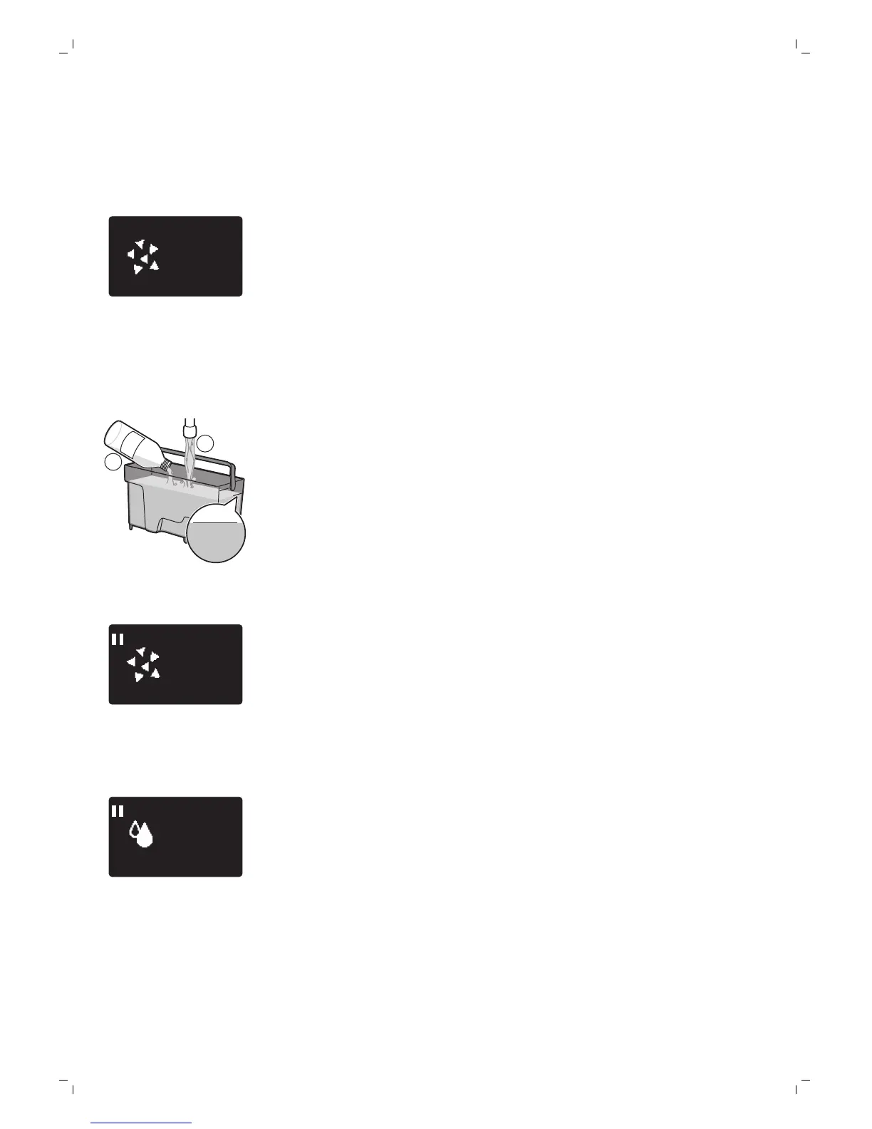 Sie werden über die Anzeige aufgefordert, die Entkalkungslösung in den