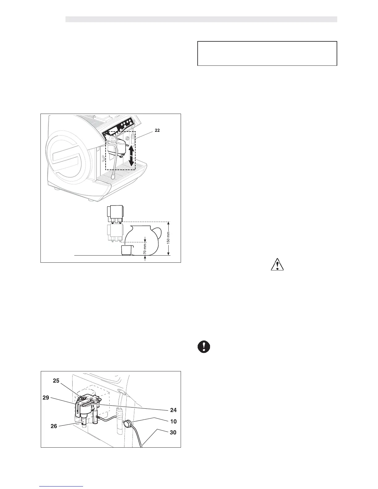 Steam spouts (17) and hot water spouts (11) are equipped with