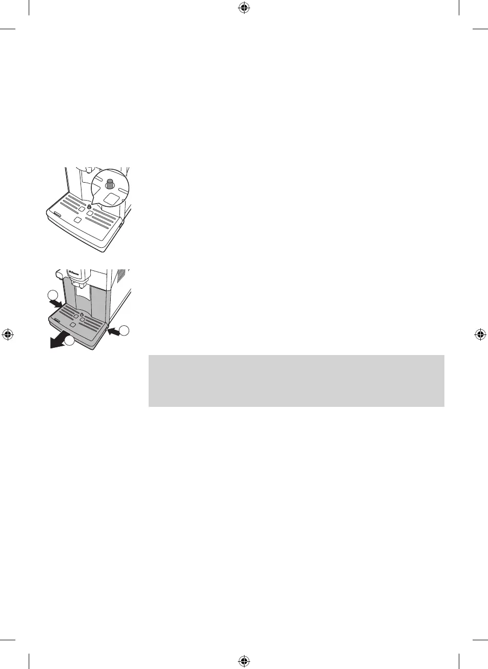1 Press the release buttons on both sides of the drip tray (1) and