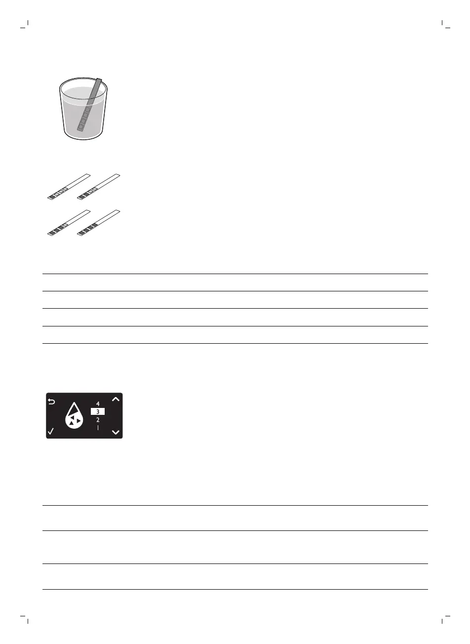 1 Immerse the water hardness test strip (supplied with the machine) in tap