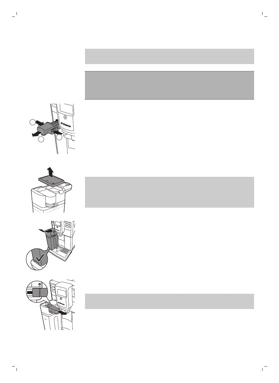 4 Слегка наклоните сосуд для молока и вставьте его в направляющие для