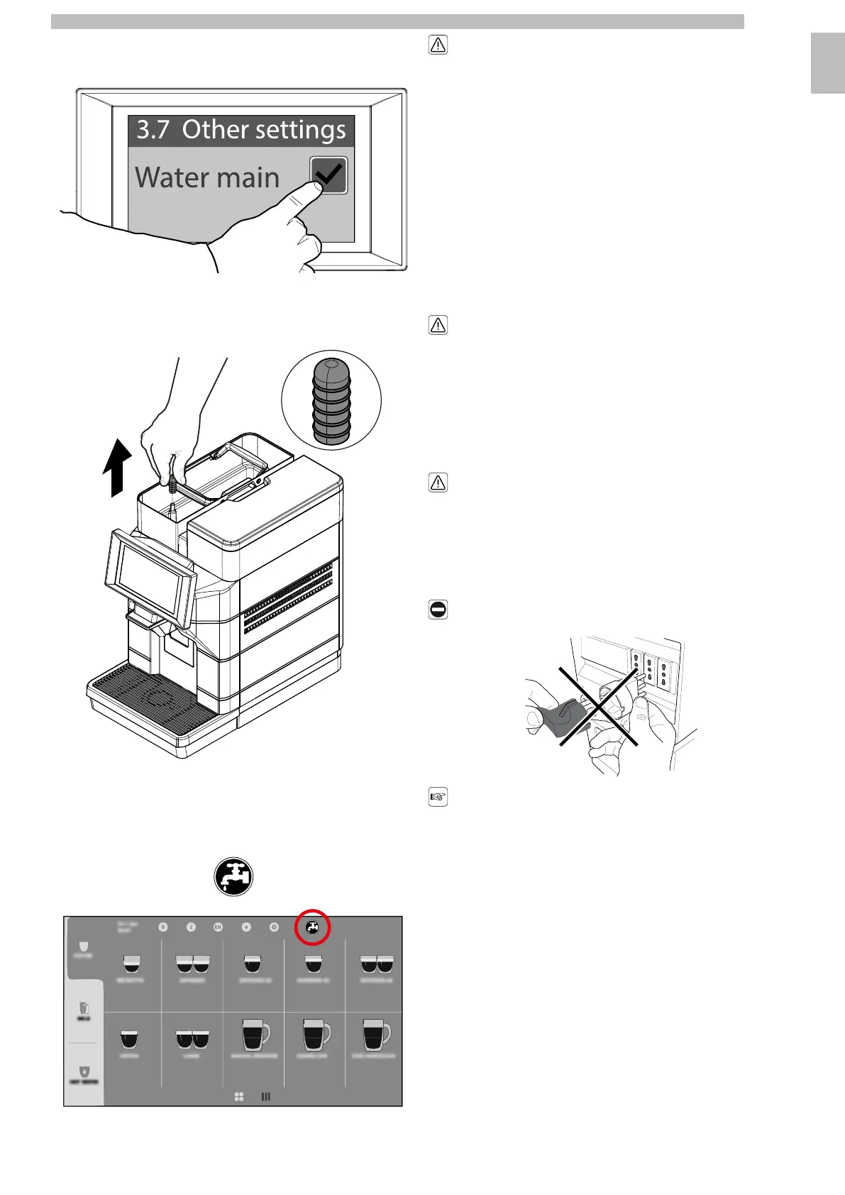 water tank,disablethe"Watermain"item intheprogrammingmenuitem"Machine