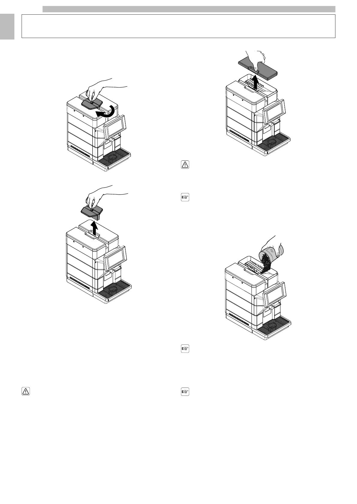 Now the water tank and the coffee bean hopper can be filled.