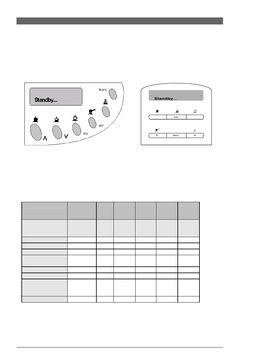 The various functions indicated in the table can be checked by pressing the buttons (combinations)