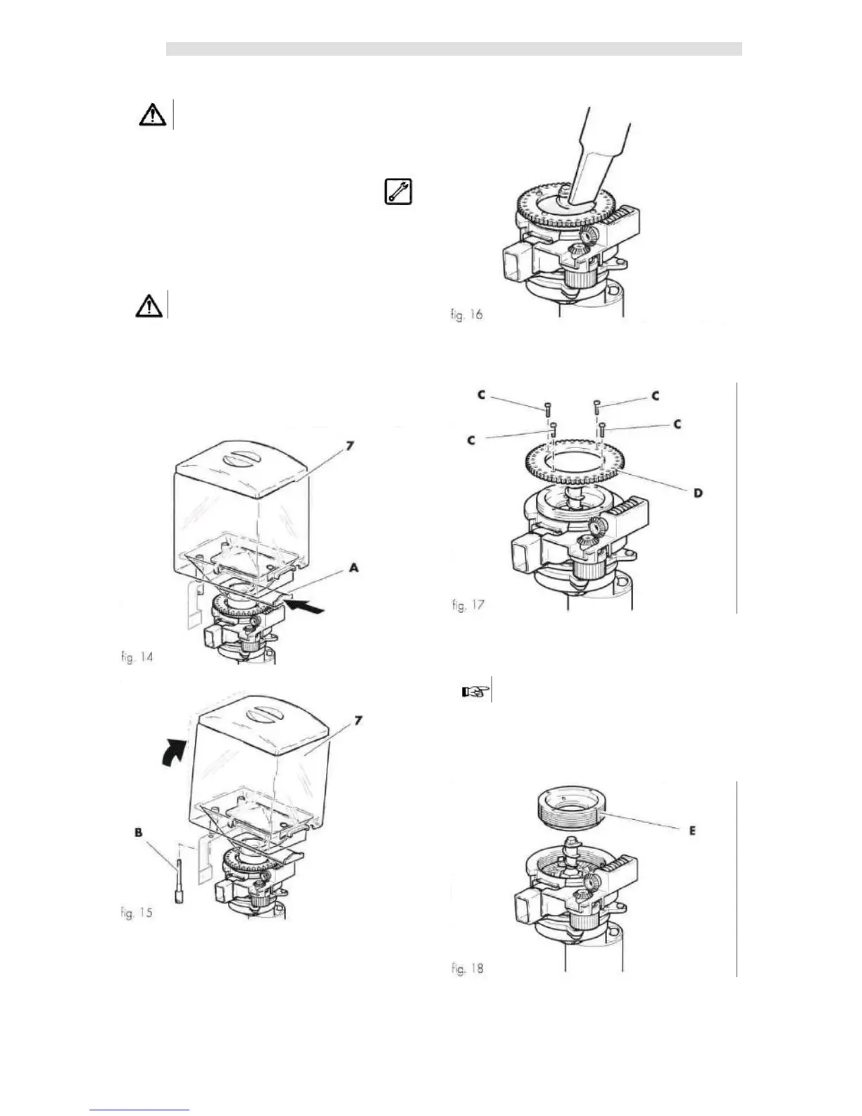 - Firstly remove the four screws (ref. C, fig. 17), then