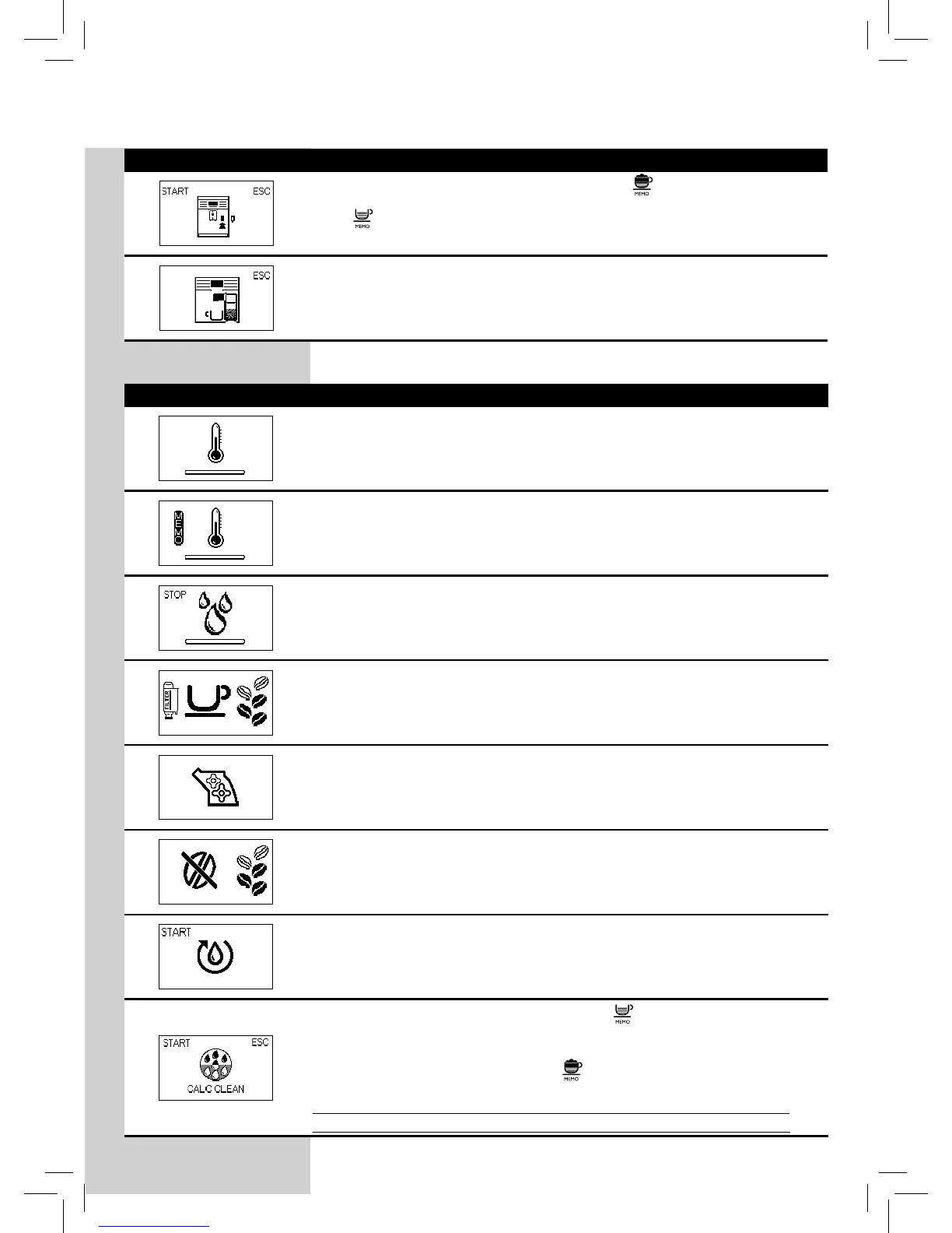The machine needs to be descaled. Press the “ ” button to start the descal-