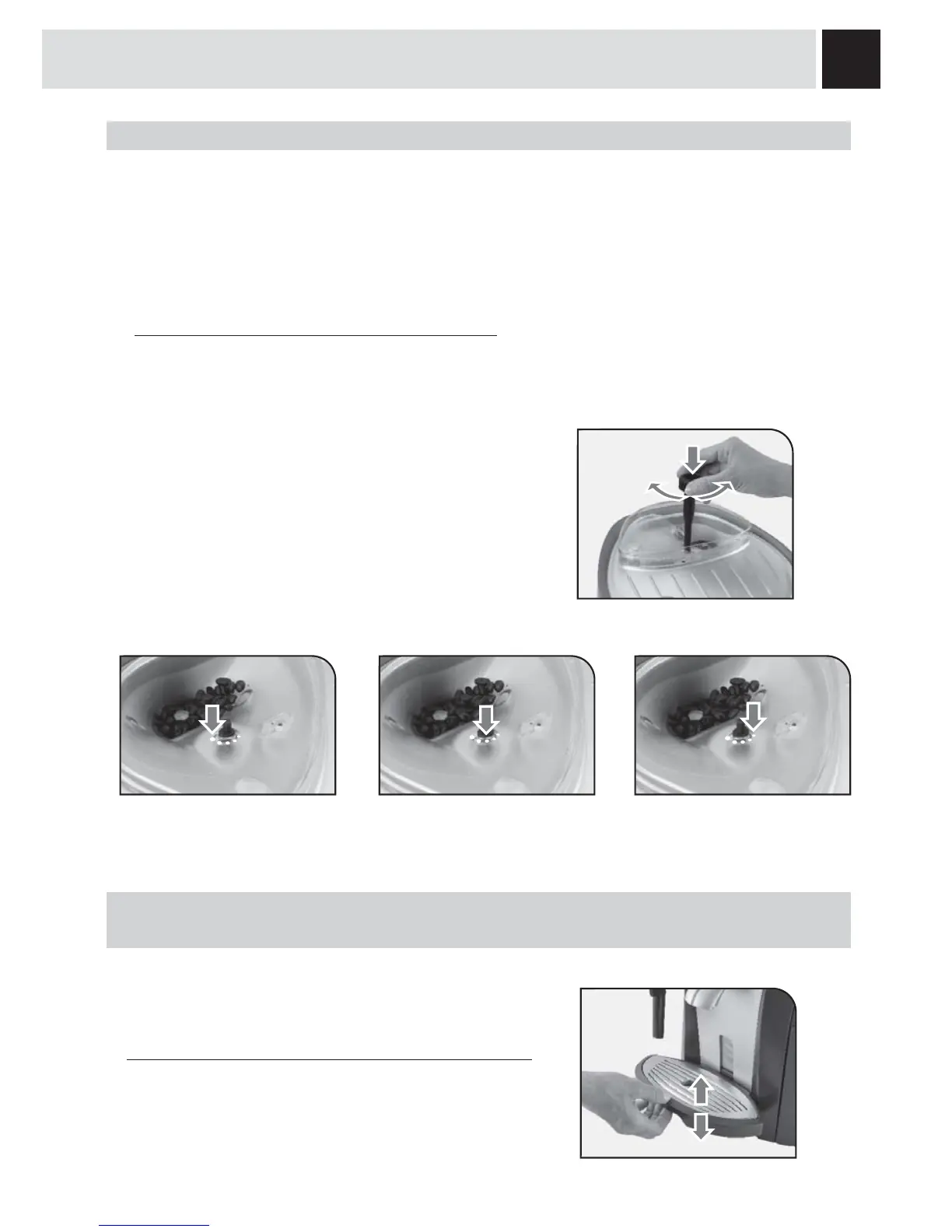 The adjustment must be performed using the small pin located inside the coffee bean hopper. This must