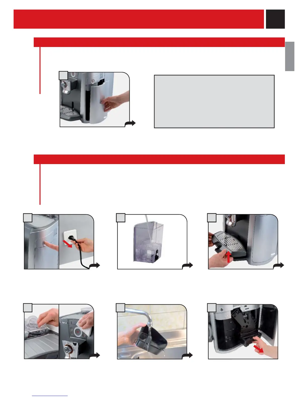 During normal operation, the “empty grounds drawer” message may appear. This operation must be