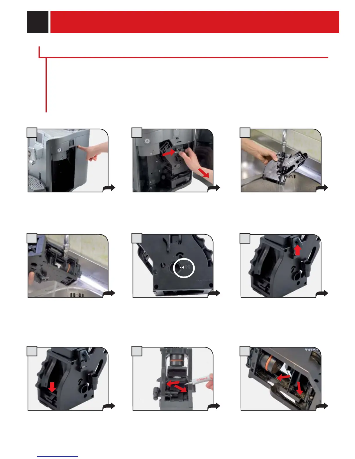 WARNING! Do not wash the brew group with detergents that can compromise its correct operation. Do