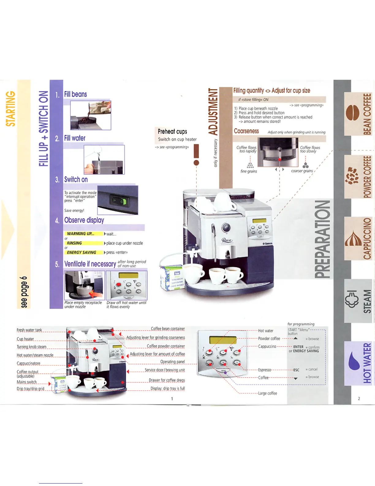 Saeco Royal - Initial Setup and Operation; Adjusting Machine Settings