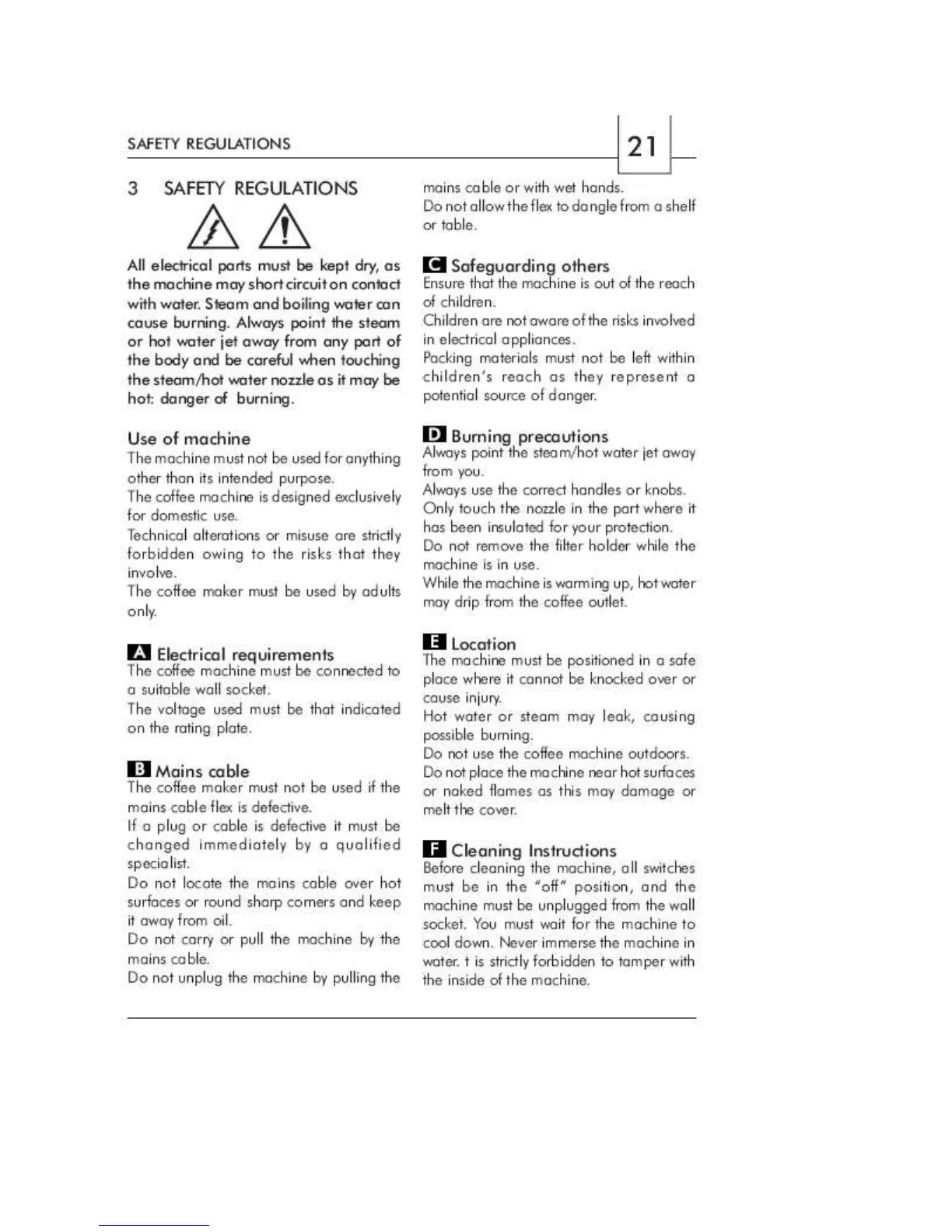 Saeco Sin 010 - Safety Regulations; Use of Machine; Electrical Requirements; Mains Cable