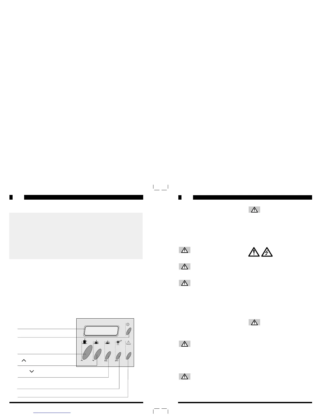 Selection key for 1 or 2 cups of espresso coffee or key <<ESC>> in the programming