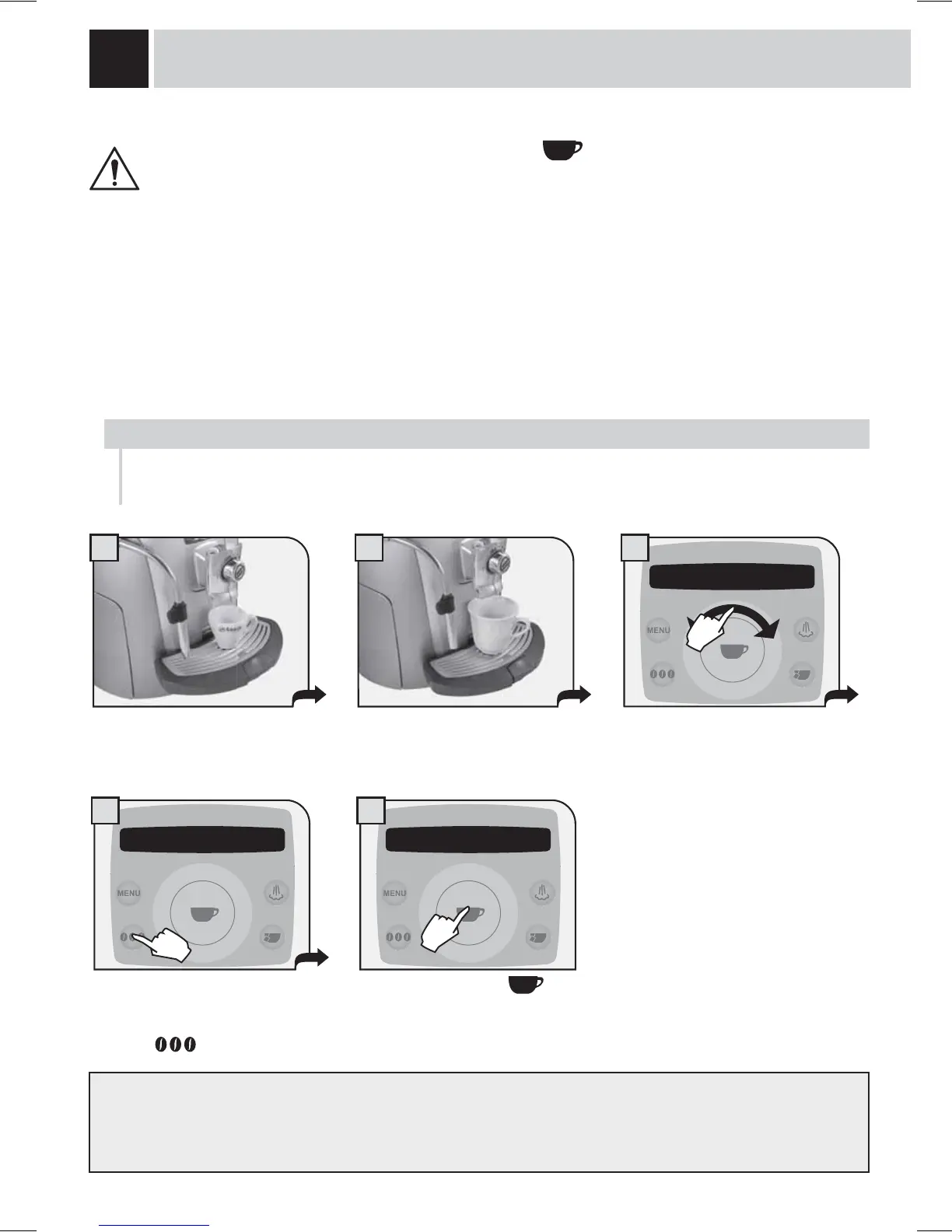en faisant glisser le doigt sur le disque. Utiliser des tasses appropriées pour éviter que le café ne déborde.
