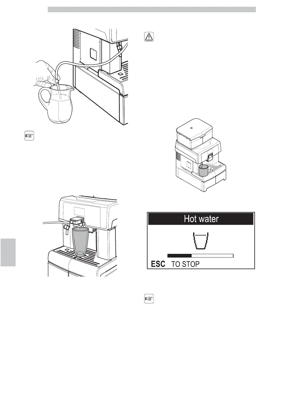 The machine prepares the hot milk automatically.