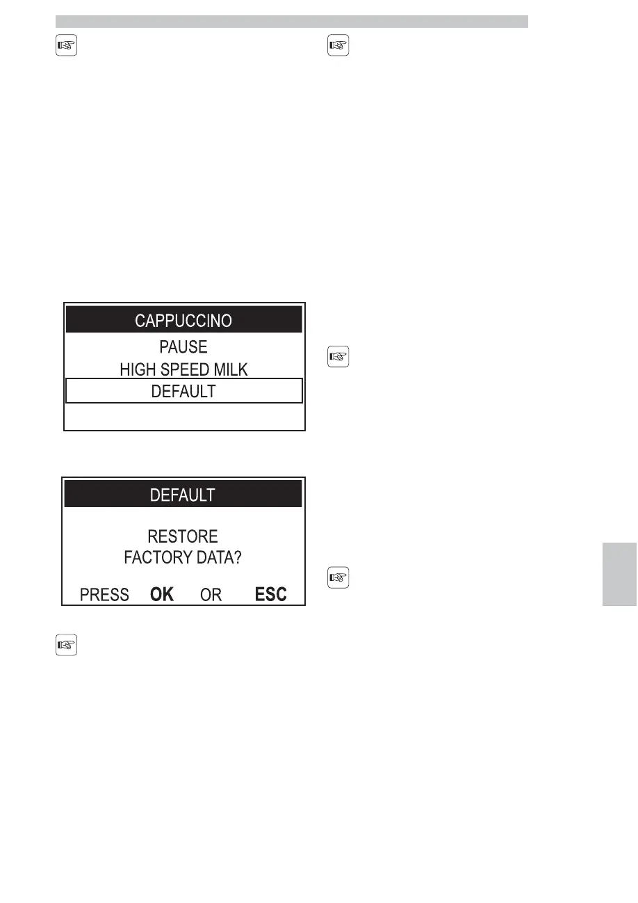 The beverage factory settings have been restored. Press