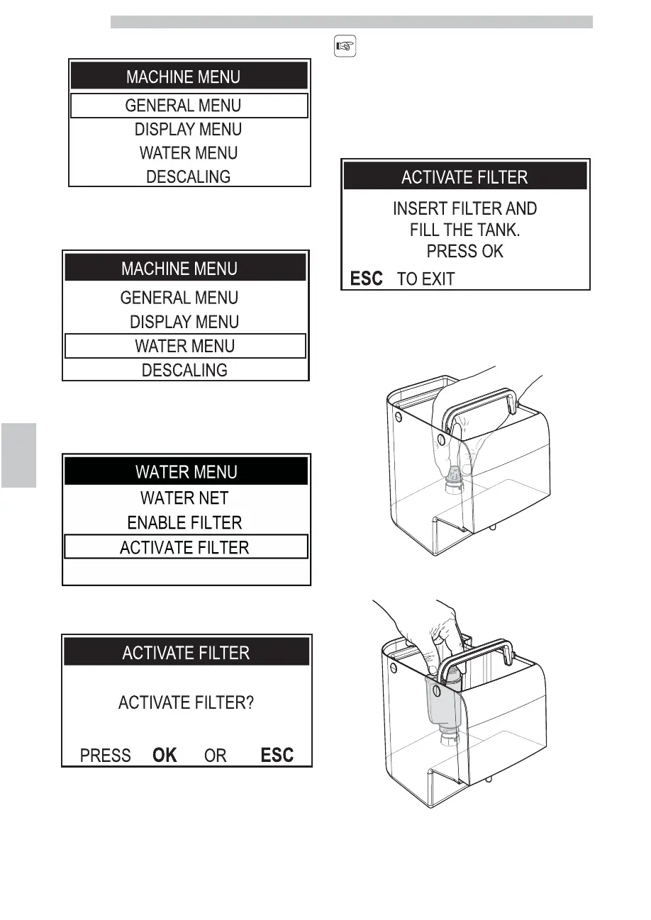 Press the "DOWN" button until the "ACTIVATE FILTER"