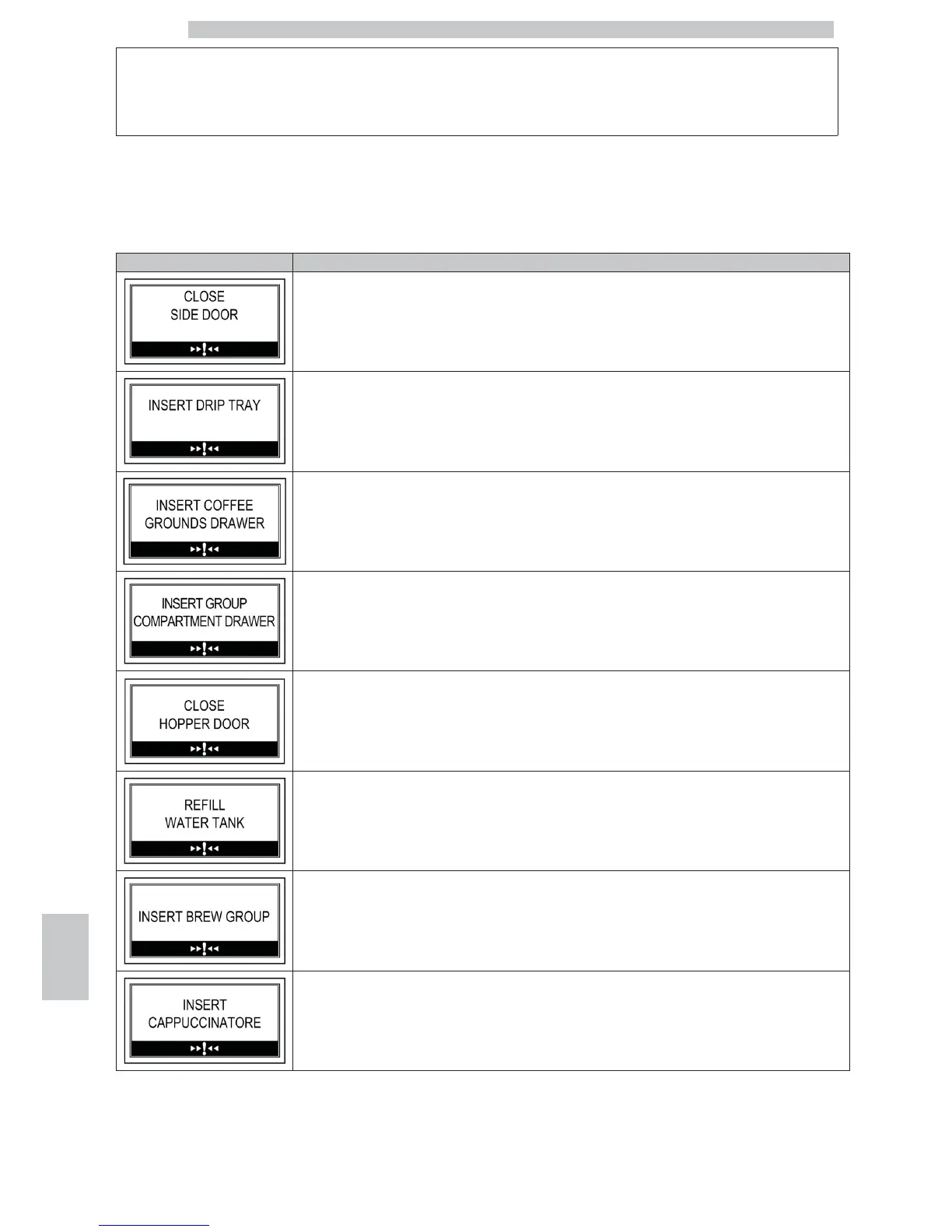 This chapter describes all the warning messages that the machine may display to the user and the actions that can and/or