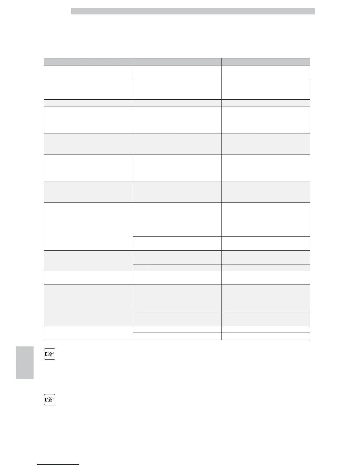 The following table indicates the possible error or alarm cause which may lead to a partial or total shutdown of the