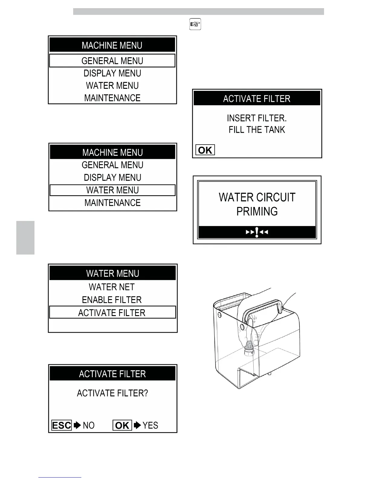 Press the "Clean" button until the "WATER MENU"