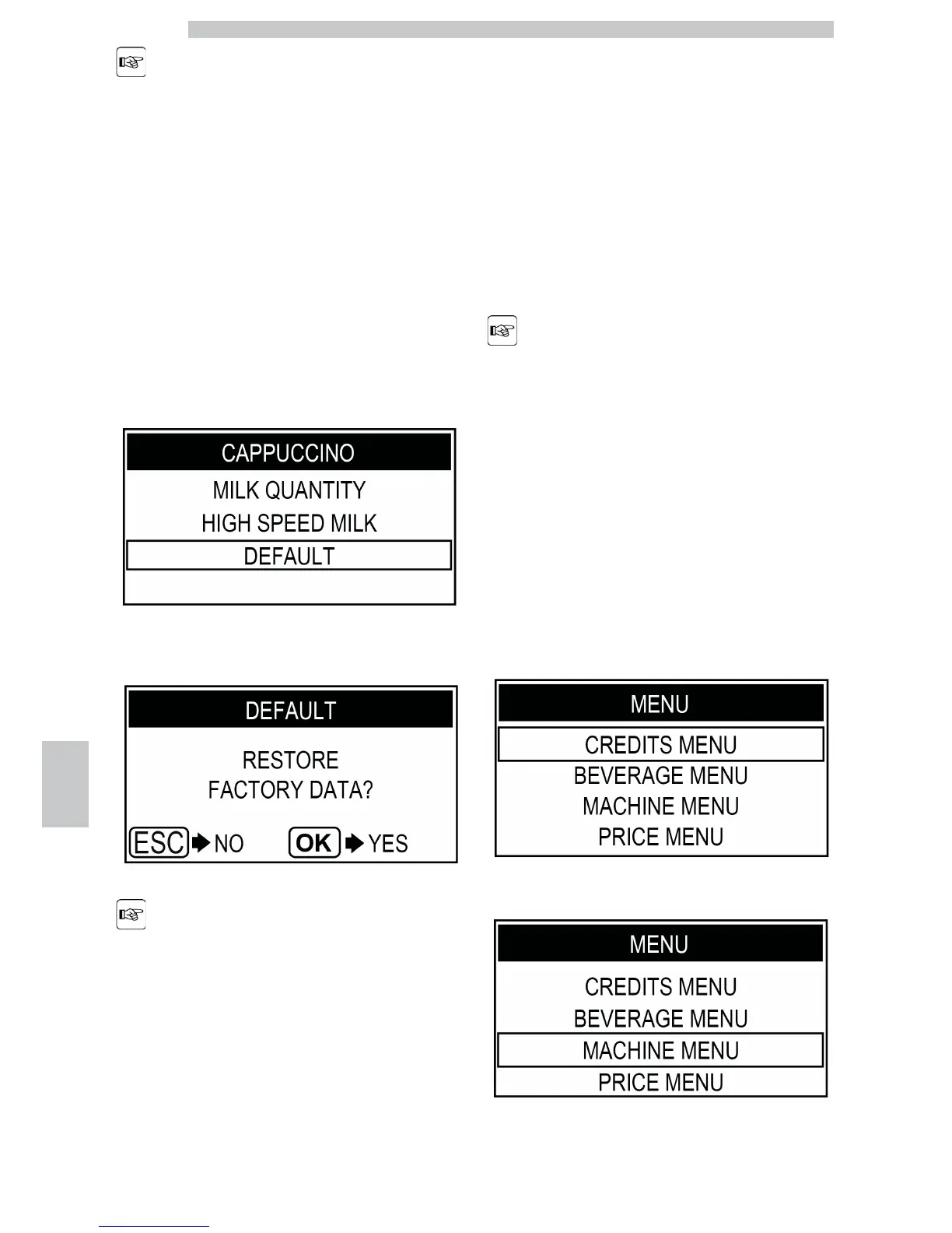 Press the "Clean" button, to select the "MACHINE