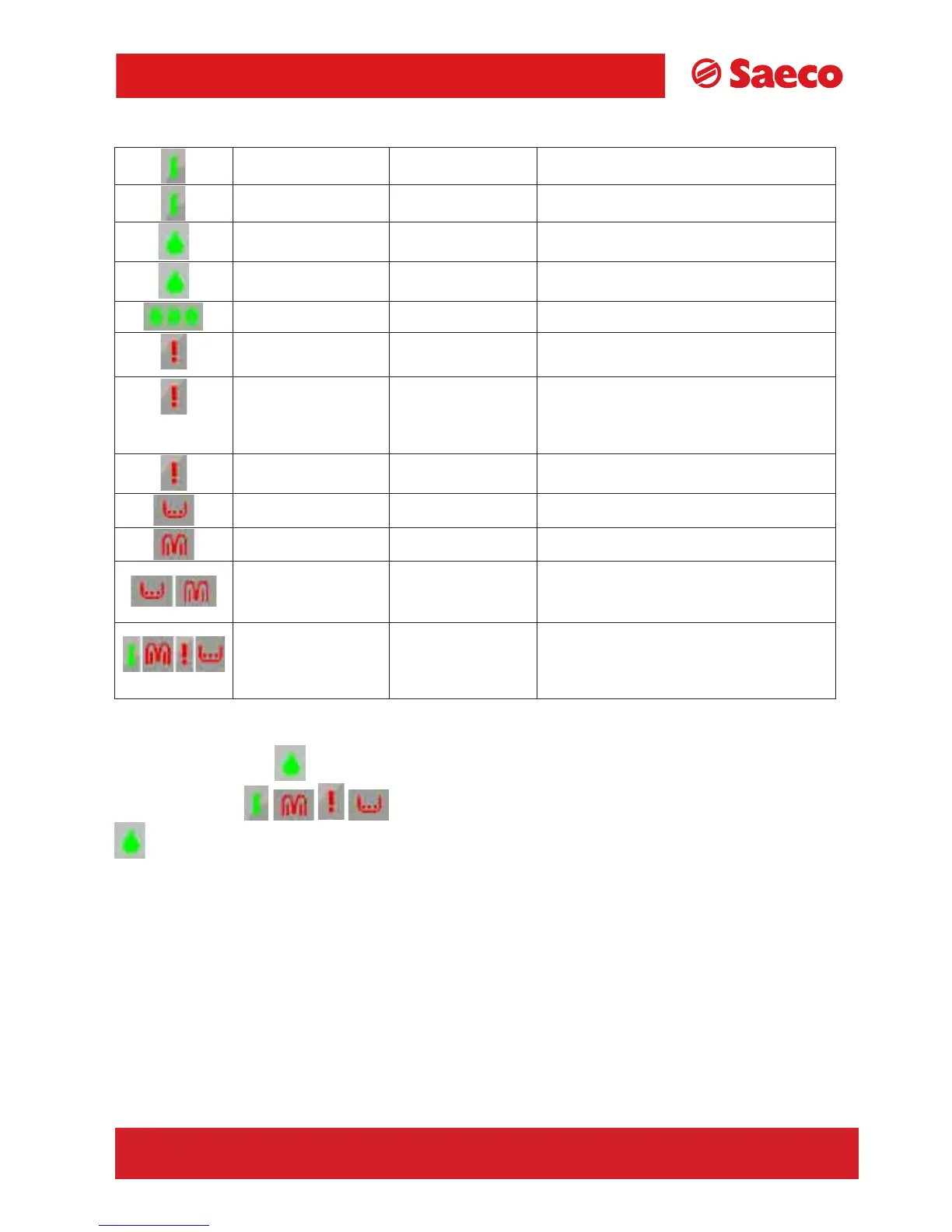 Temperature ready LED Fixed on. Indicates “Coffee ready” or “Steam ready”.