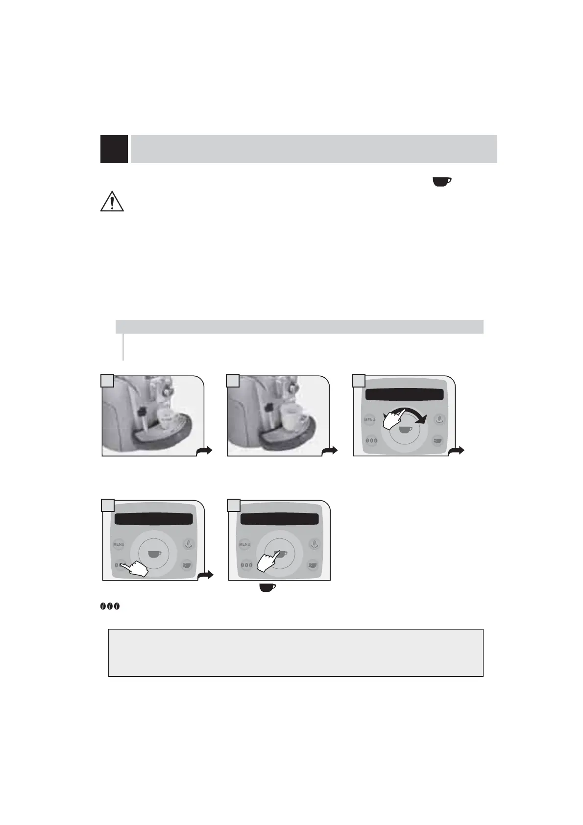 This procedure shows how to dispense an espresso. To dispense another type of coffee, select it by navigating