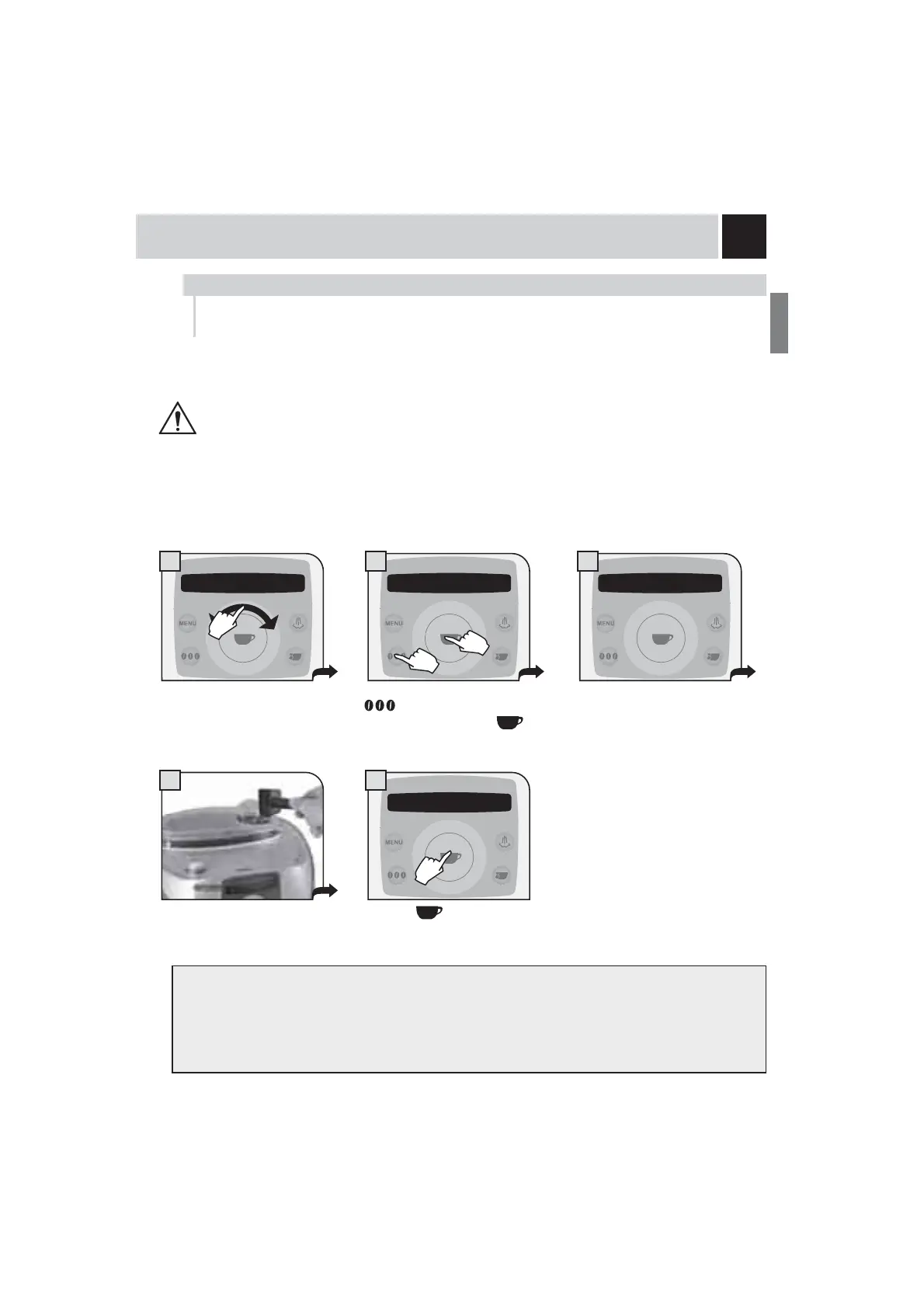 • If brewing does not start within 30 seconds from the appearance of the message (3), the machine will return to