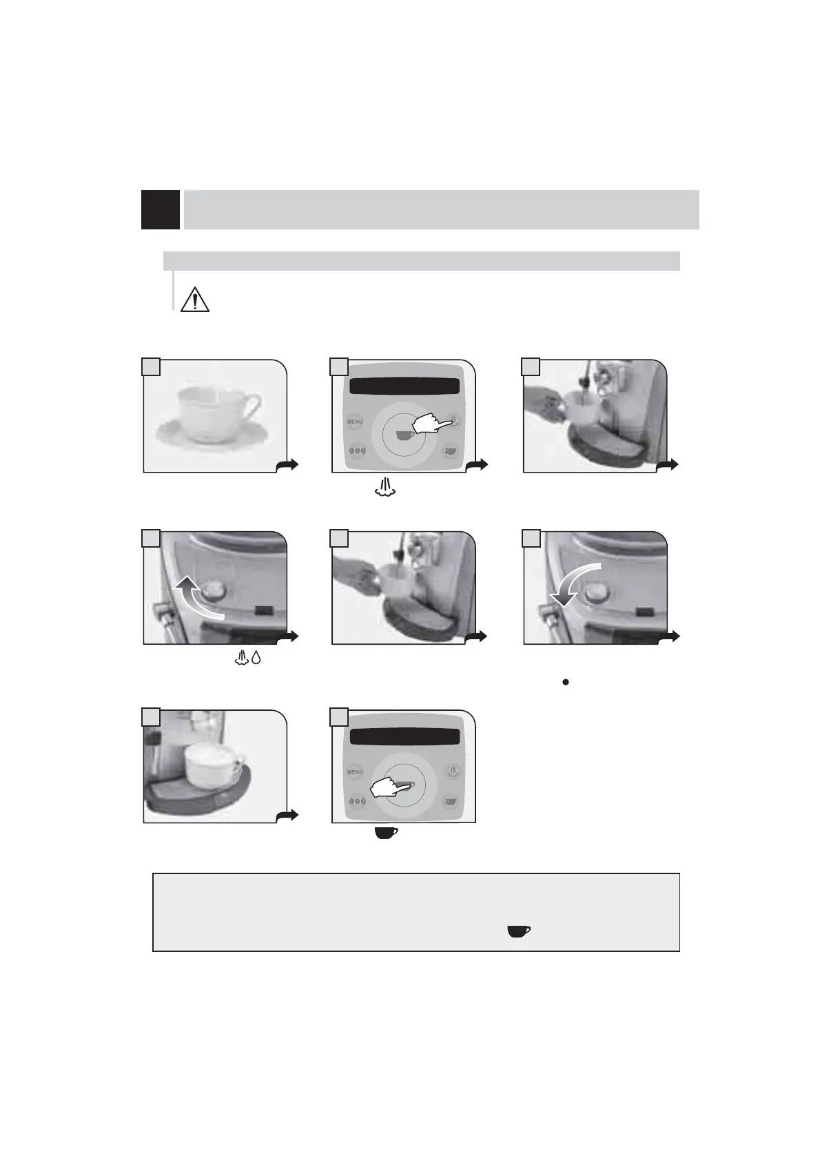 • dispense two coffees by following steps 7 and 8 (in this case, press the