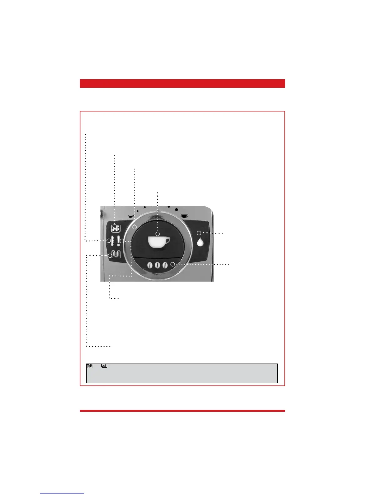 • Permanently on (one or more causes): No coffee left, water tank is empty, the residual water tray is