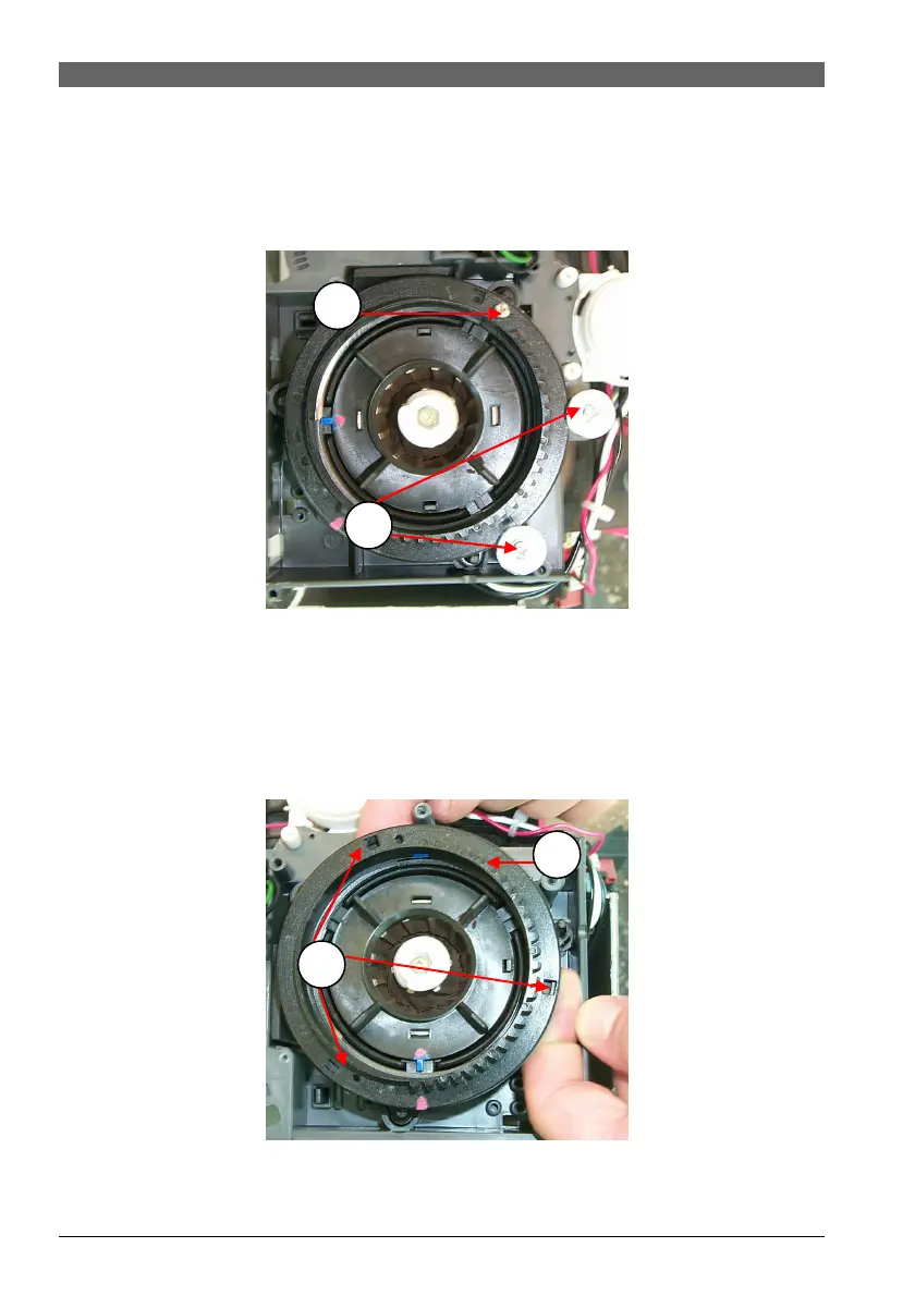 a) Remove the two fixing screws (1). Remove the fixing screw on the upper grind