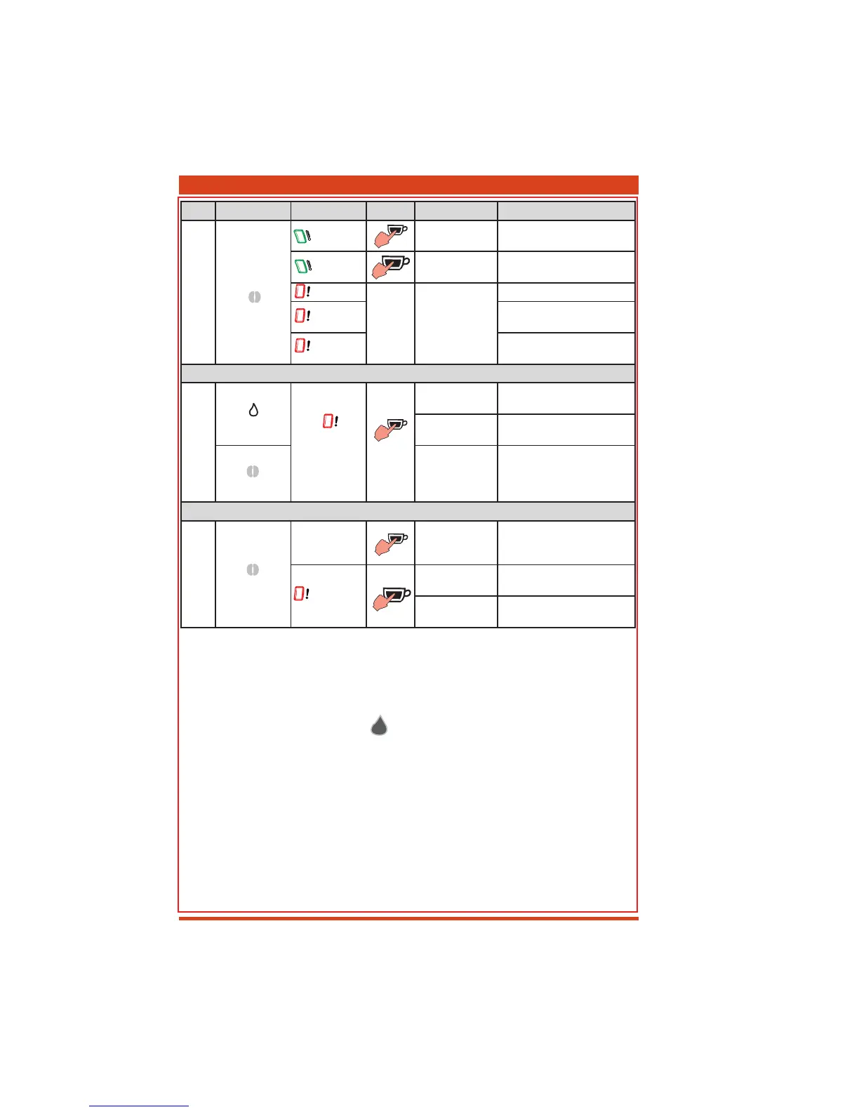 - Press on/off; the coffee maker will begin fi lling the circuit (red LED 3 blinks quickly).