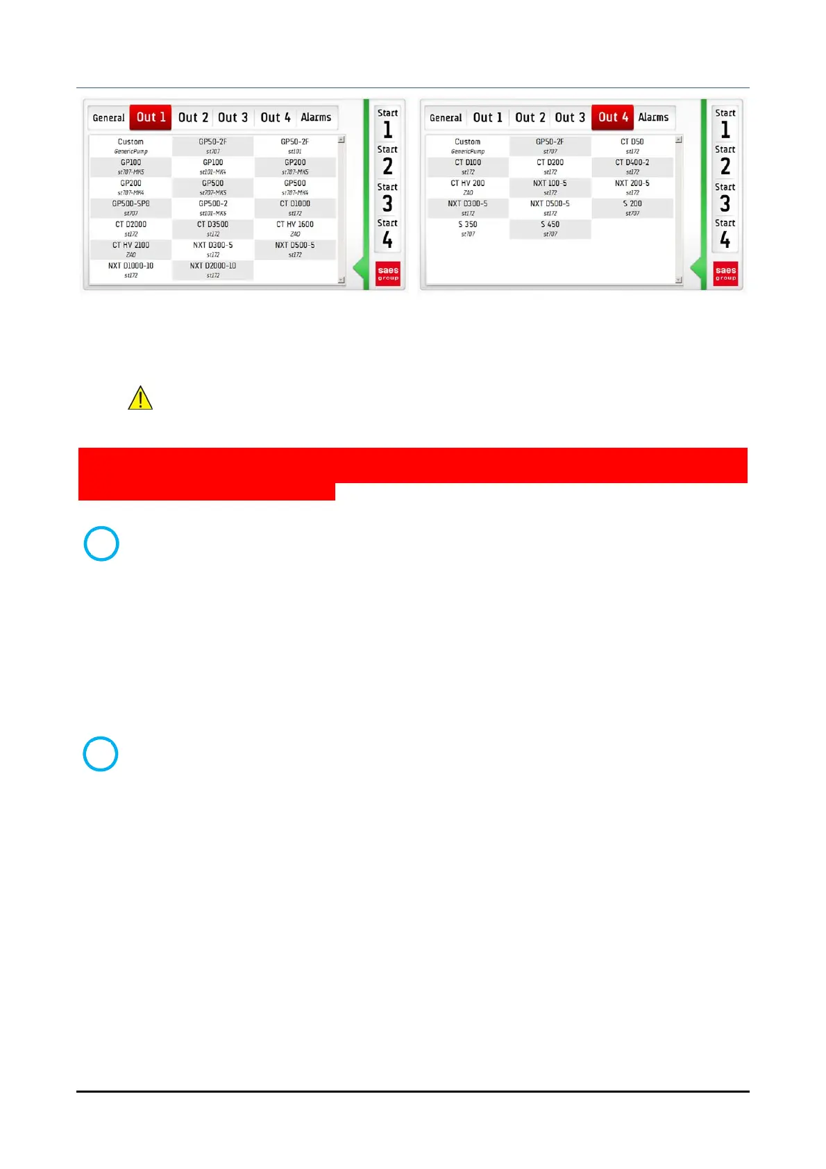 Selecting the pump model, the recommended settings are preloaded (instructions to