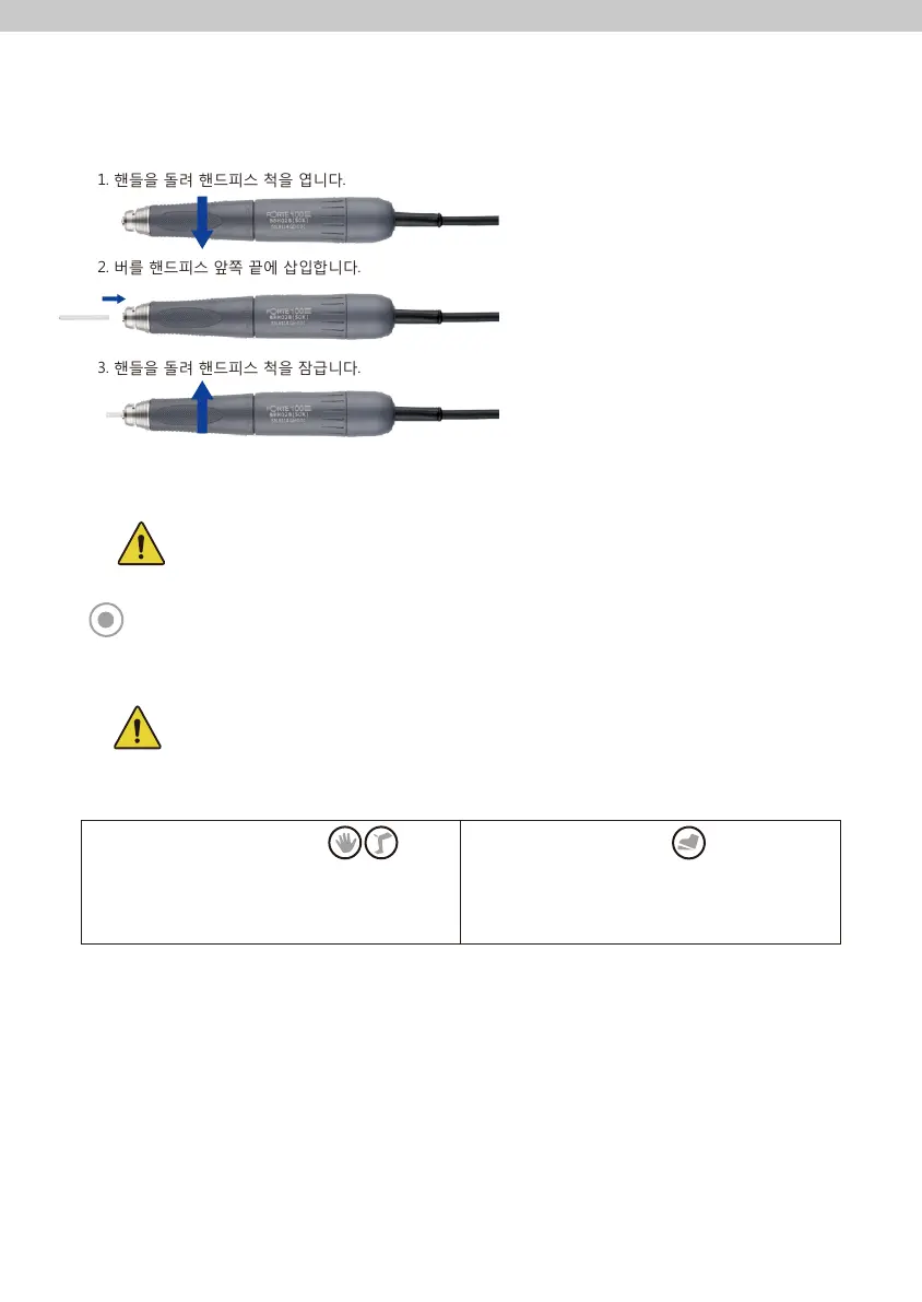 - 사용 전 반드시 척을 잠그십시오. 핸드피스의 손상의 원인이 됩니다.
