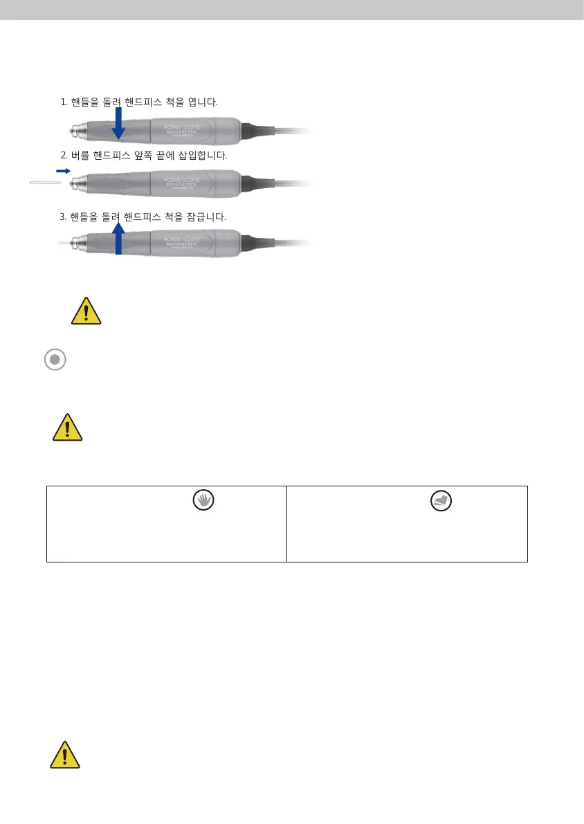 - 사용 전 반드시 척을 잠그십시오. 핸드피스의 손상의 원인이 됩니다.