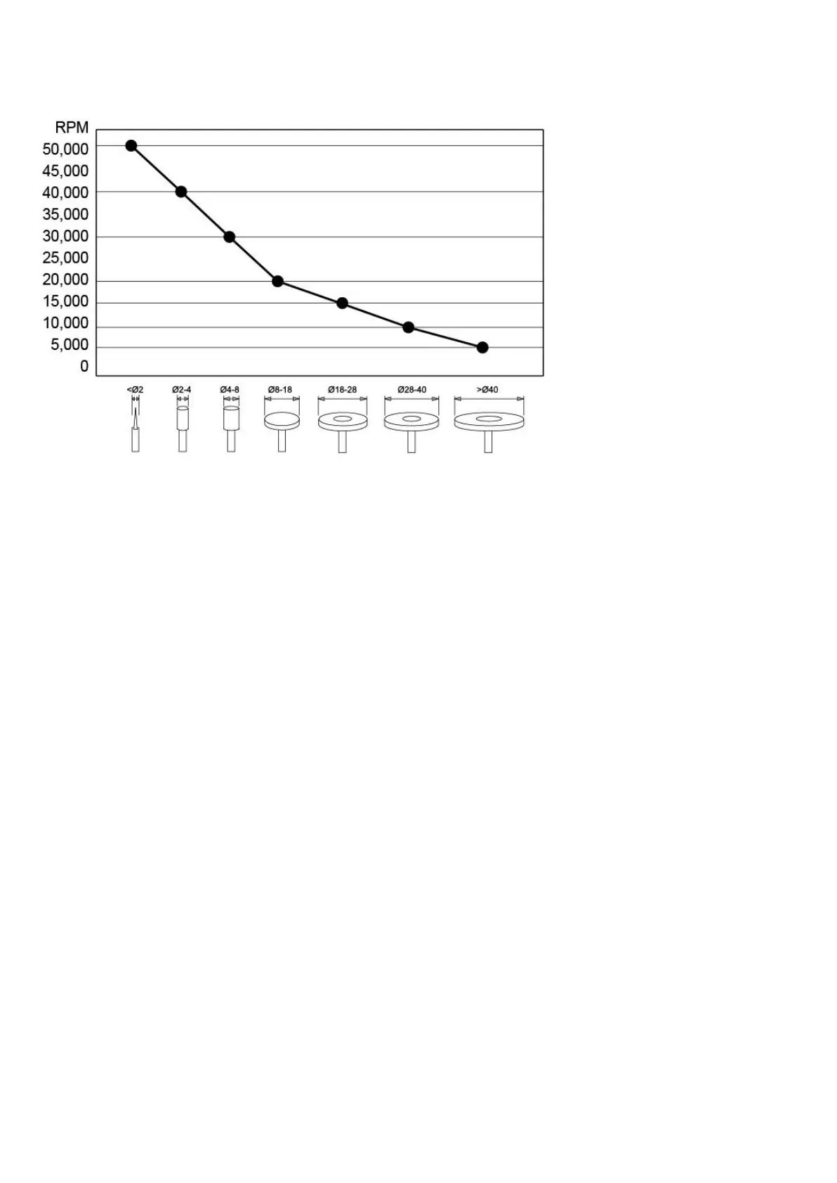 Por favor, mantenga la velocidad de giro de acuerdo con el siguiente diagrama para evitar