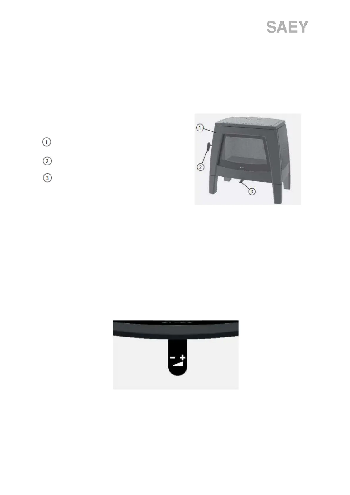 The air regulation is done with the control located at the front of the stove, in the middle at the bottom