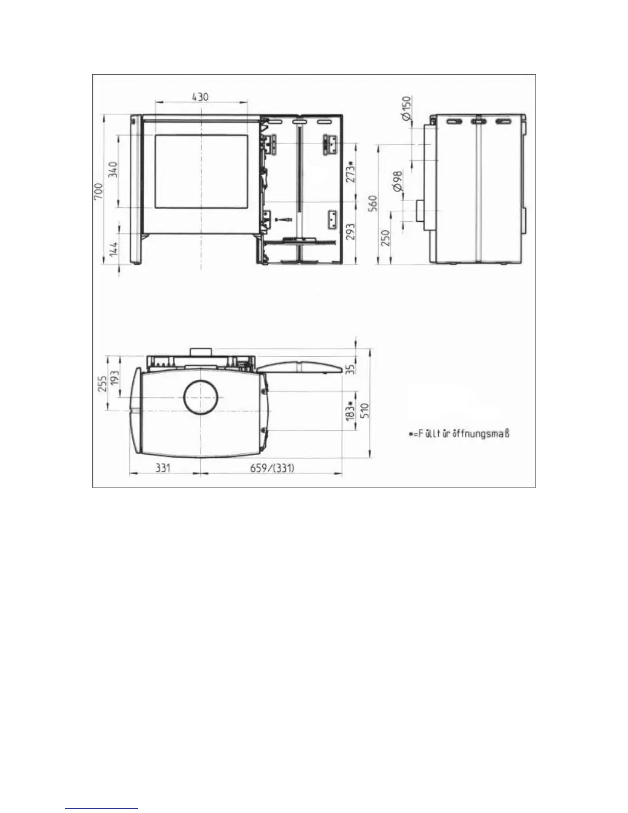 Small filler door opening mm 270 x 180