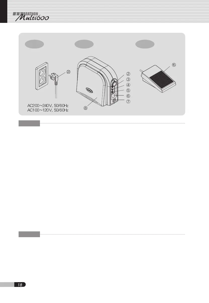 using foot pedal ⑮ or knee control panel