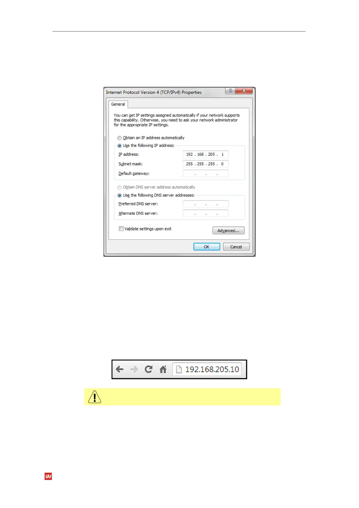 Before proceeding with the initial link setup in the Web GUI, you must adjust the IPv4 settings