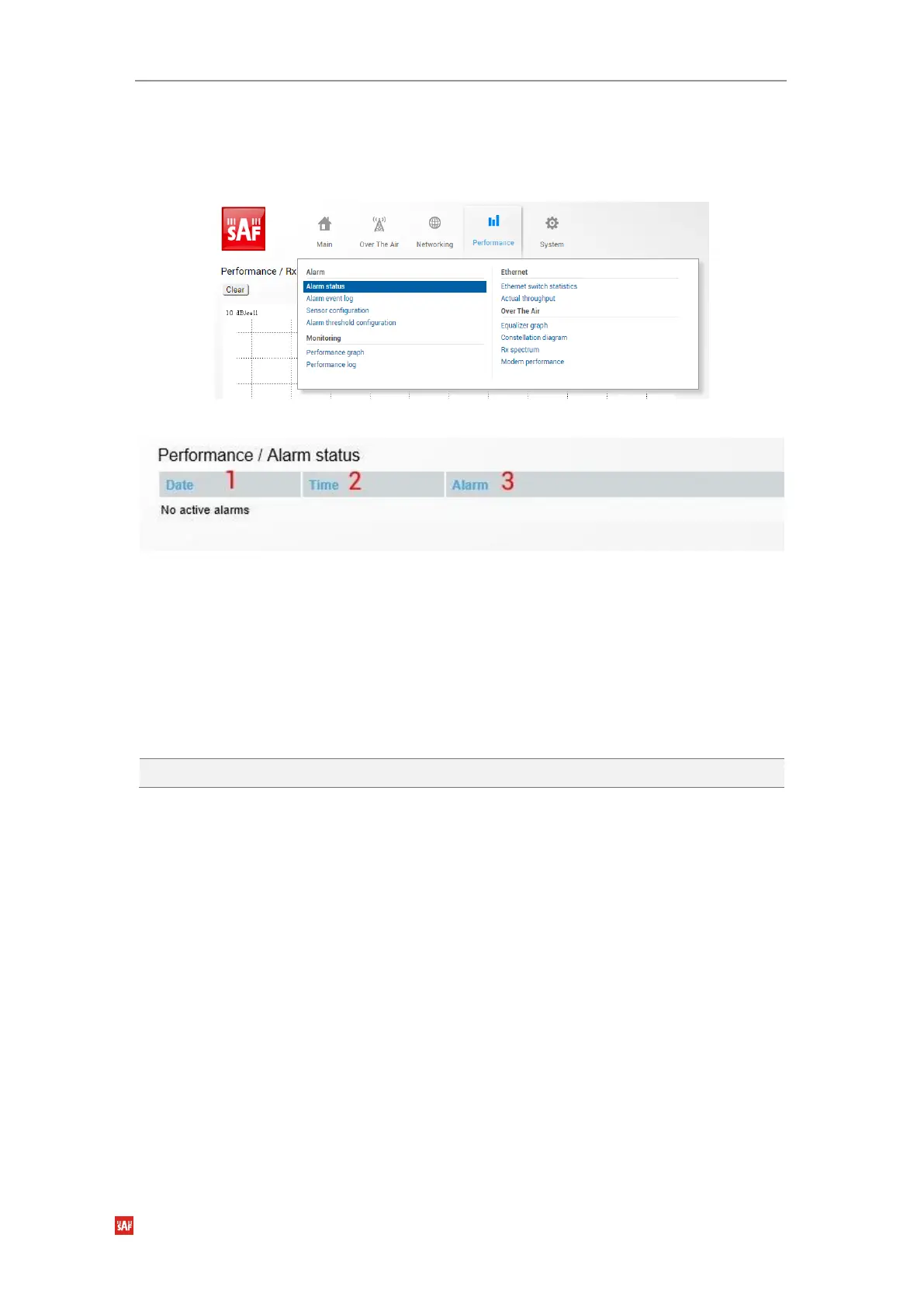 Performance Alarm Alarm status